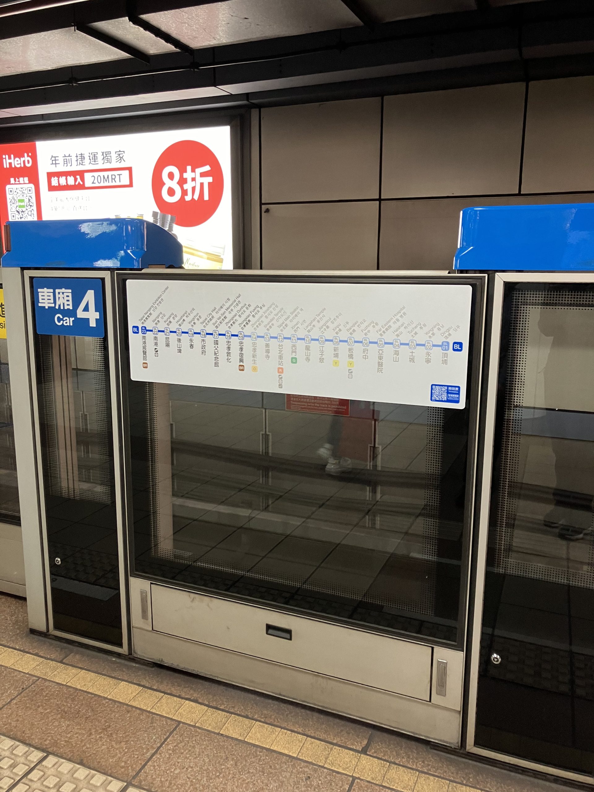 I will say, however, that one of the things that strikes me as quite different from my earlier impressions of mainland China is the sense of order here in Taiwan. Taiwan is a very orderly place, generally speaking. The subway (called the MRT, for Mass Rapid Transit, in English, and jieyun 捷運 in Chinese) is one of the clearest manifestations of that order. On each subway platform there are markings on the floor to indicate where each set of doors will open when the train arrives. Extending out from the markings are lines indicating lanes where people are supposed to wait. People are pretty compliant; they generally queue up in those lanes in the order in which they arrived on the platform.